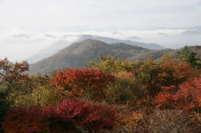 素晴らしい眺望の中、赤く染まった景色は秋を感じさせてくれます。